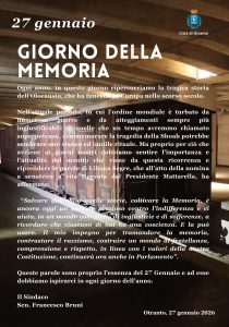 Nell’attuale periodo, in cui l’ordine mondiale è turbato da numerose guerre e da atteggiamenti sempre più ingiustificabili di quelle che un tempo avremmo chiamato superpotenze, commemorare la tragedia della Shoah potrebbe sembrare uno stanco ed inutile rituale. Ma proprio per ciò che avviene ai giorni nostri dobbiamo sentire l’importanza e l’attualità del monito che viene da questa ricorrenza e riprendere le parole di Liliana Segre, che all’atto della nomina a senatrice a vita ricevuta dal Presidente Mattarella, ha affermato: