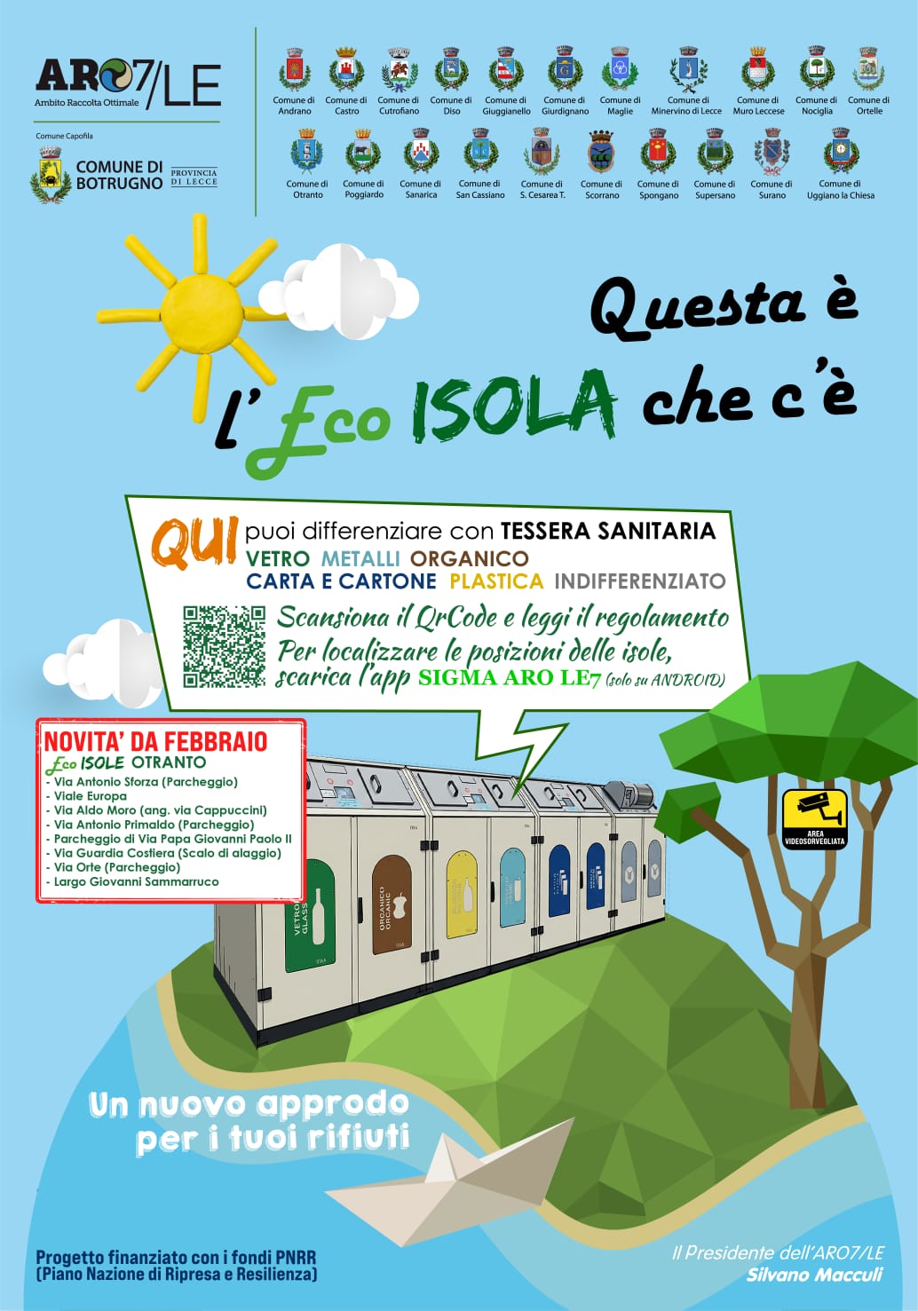 ECO ISOLE è un progetto finanziato con fondi PNRR ai Comuni dell’ARO 7/LE, di cui il Comune di Otranto fa parte.