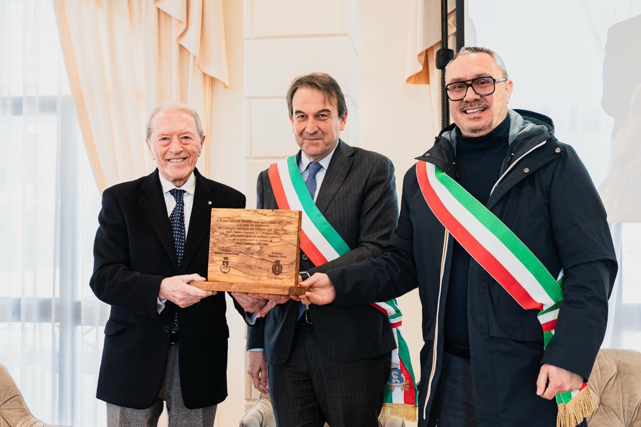 Nell’occasione i Sindaci di Otranto, Francesco Bruni, e di Muro Leccese, Antonio Donno, hanno consegnato all’ex Ministro Walter Luchetti una targa a ricordo del vertice dei Ministri dell’Agricoltura, tenuto nel 1996 nel Castello di Otranto e nel Convento dei Domenicani di Muro Leccese.