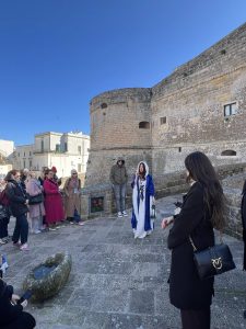 Dopo un tour del centro cittadino, il gruppo è stato accolto dall’ass. Cristina De Benedetto e da operatori turistici locali, nel Castello Aragonese.