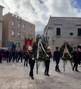 Nella Giornata dell'Unità Nazionale e delle Forze Armate, questa mattina, dopo la Santa Messa celebrata da Mons. Francesco Neri nella Cattedrale di Otranto, il corteo delle autorità civili, militari e religiose si è mosso verso il Monumento ai Caduti, in Lungomare degli Eroi, per la deposizione delle corone d'alloro e la lettura dei messaggi del Presidente della Repubblica e del Ministro della Difesa.