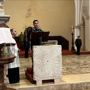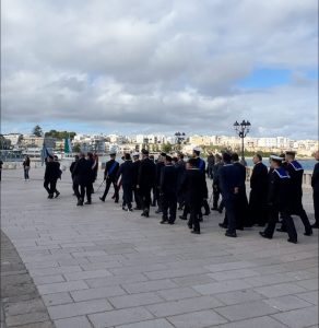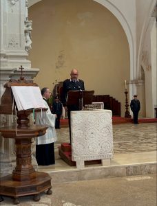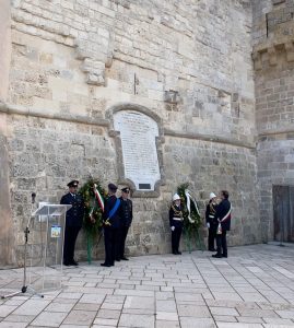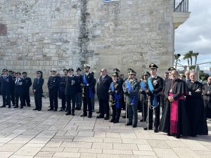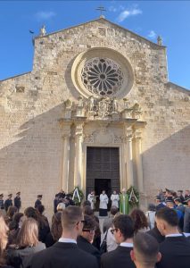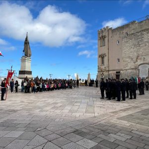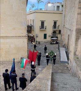 Nella Giornata dell'Unità Nazionale e delle Forze Armate, questa mattina, dopo la Santa Messa celebrata da Mons. Francesco Neri nella Cattedrale di Otranto, il corteo delle autorità civili, militari e religiose si è mosso verso il Monumento ai Caduti, in Lungomare degli Eroi, per la deposizione delle corone d'alloro e la lettura dei messaggi del Presidente della Repubblica e del Ministro della Difesa.