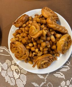 Un'altra usanza molto sentita è la preparazione della 𝑀𝑎𝑠𝑠𝑎, una sfoglia di farina impastata con l'acqua e tagliata a strisce strette e lunghe, cotta poi con i ceci. Questa pietanza viene cucinata in grandi quantità e distribuita gratuitamente nei giorni della festa.