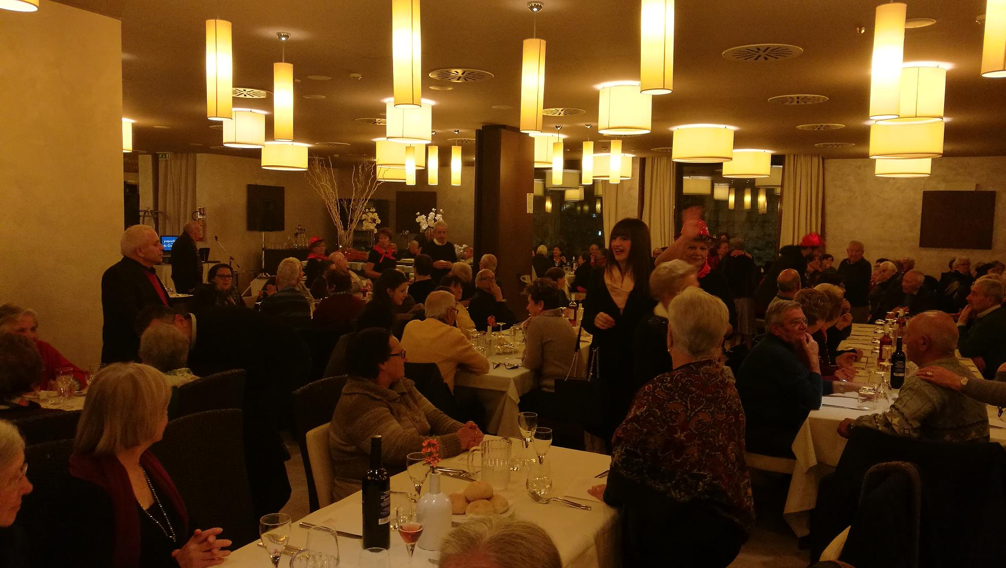 Natale insieme appuntamento ormai fisso dedicato agli ultrasettantenni di Otranto si svolto ieri sera presso Basiliani Resort Organizzato dall Amministrazione Comunale in collaborazione con l Associazione Carpe Diem vede ogni anno una larga partecipazione La cena stata come sempre servita dai volontari della Carpe Diem che insieme agli assessori e ai consiglieri hanno animato la serata di scambio di auguri natalizi Il cittadino pi longevo di Otranto sig Delle Donne ha ricevuto in dono un cesto natalizio ricco di prelibatezze Agli altri centenari sar recapitato a casa La festa si conclusa intorno alle 23 00 In allegato le FOTO